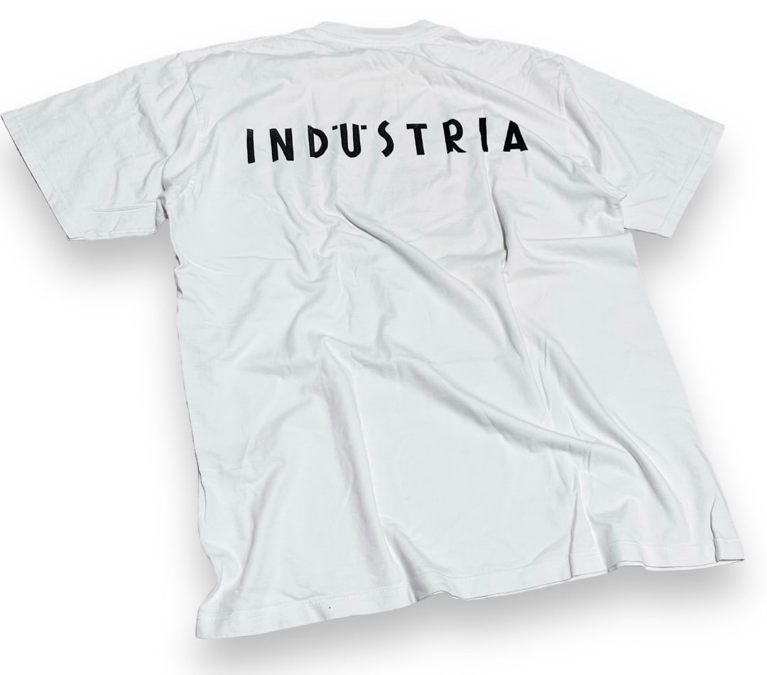 90年代UK「BODY RAP」による、強烈なアートTシャツ。グラマラスな男性ヌードと冷たい視線のポートレートが融合した、まるでピエール&ジル meets ダダイズムな世界観。背面には”INDUSTRIA”の無機質なロゴ。ファッションというより、もはやアートムーブメント。